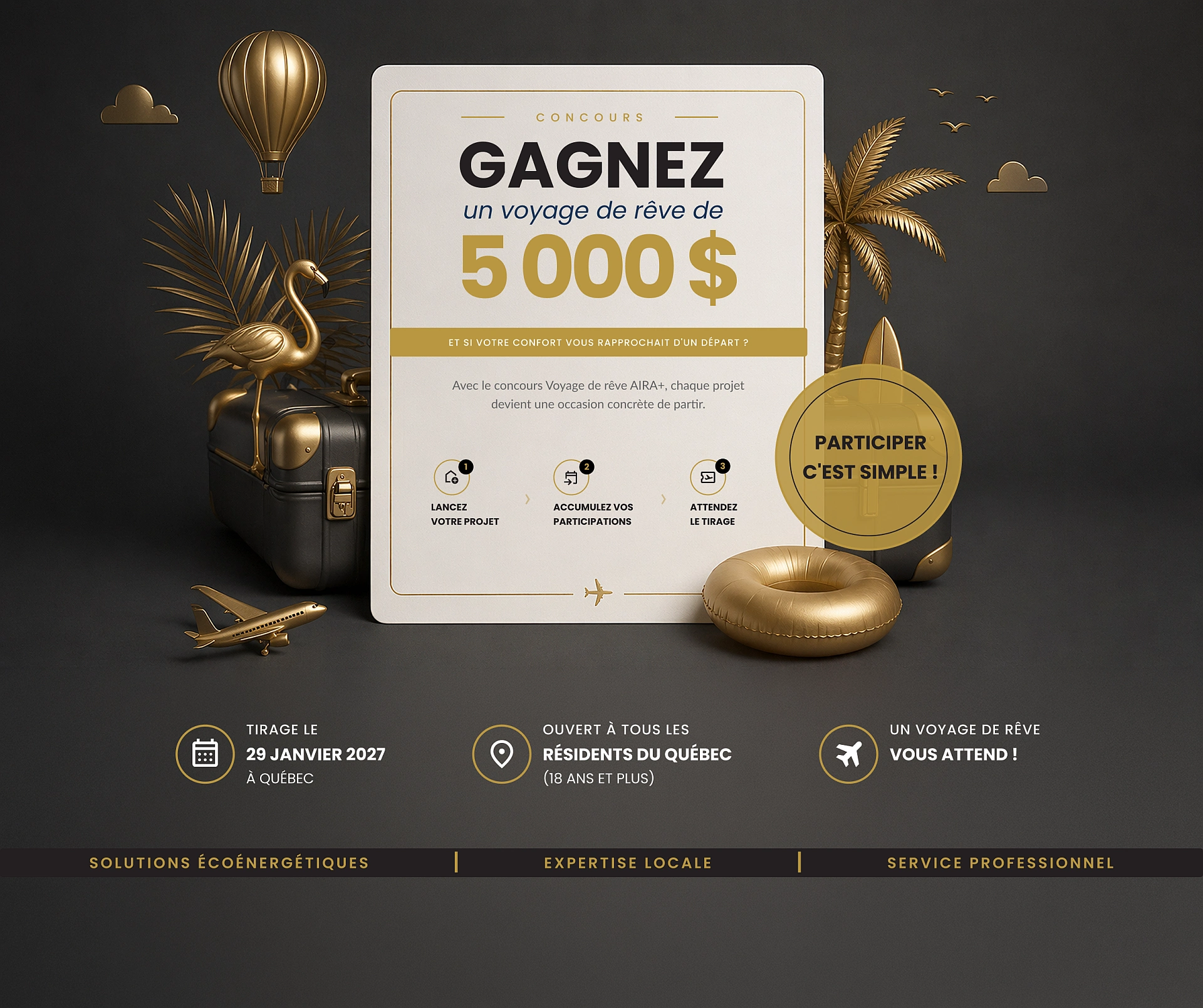 Vous pouvez participer de deux façons: en remplissant le formulaire, sans achat requis (voir le règlement officiel), ou en effectuant un achat admissible chez AIRA+, ce qui vous permet d’obtenir des participations supplémentaires. Consultez le règlement officiel pour tous les détails.